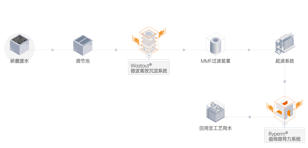 萊特萊德根據(jù)研磨廢水的特性,合理設(shè)計(jì)處理工藝,在系統(tǒng)預(yù)處理部分結(jié)合安拜芮特種藥劑,使水中少量懸浮物及不溶性硅經(jīng)沉淀后去除。結(jié)合自主研發(fā)的Ryperm曲線微導(dǎo)力系統(tǒng),對(duì)研磨廢水的處理效果顯著。有效解決研磨廢水處理成本高的問題。