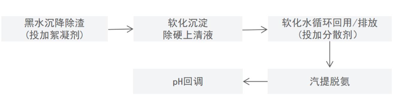 · 利用軟化沉淀除硬上清液的高pH值進行汽提脫氨,減少整個處理工藝中pH調節化學藥劑的投加量。