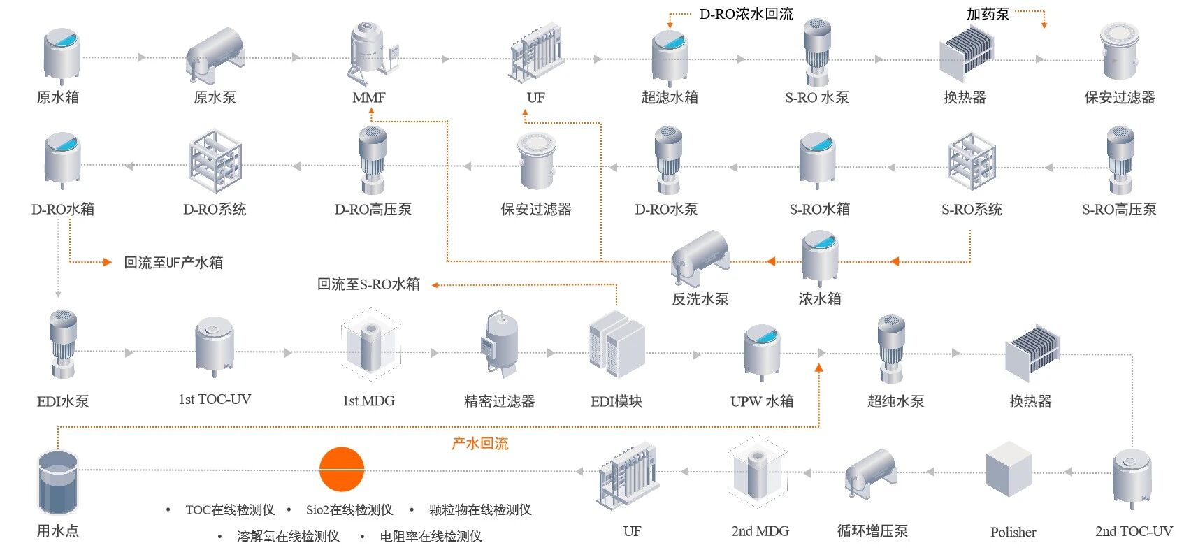 半導體超純水工藝流程圖(全膜法)